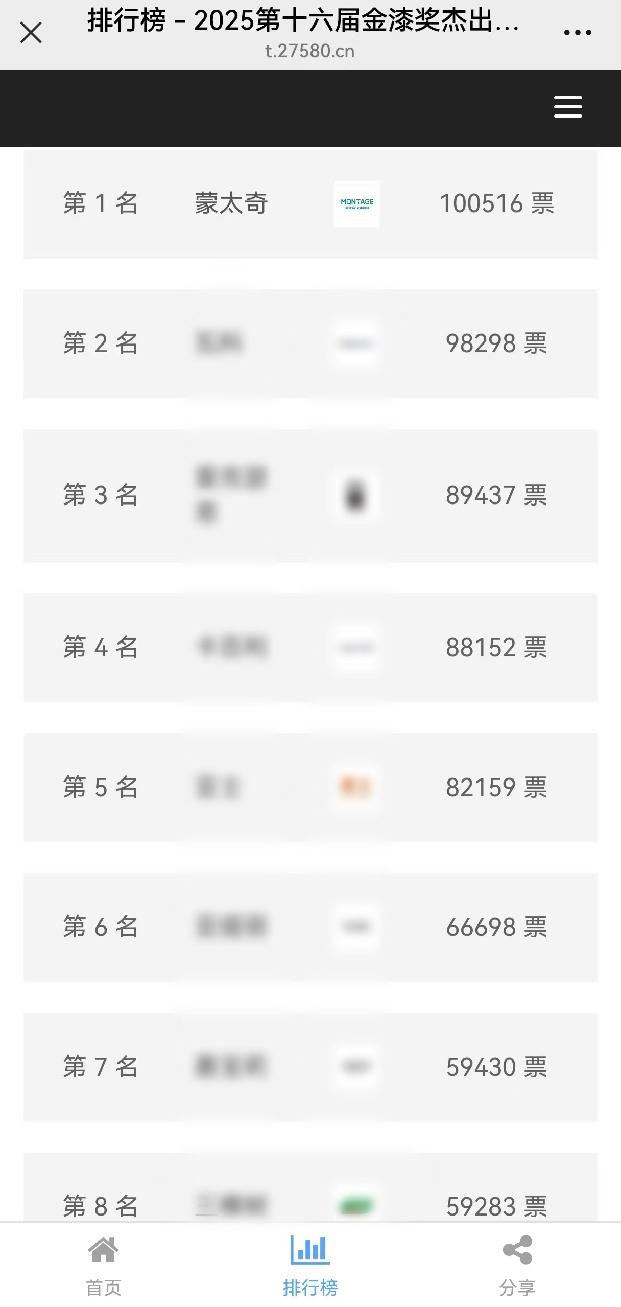 經(jīng)過(guò)首輪網(wǎng)絡(luò)投票的激烈角逐,蒙太奇以「網(wǎng)絡(luò)票數(shù)第一」在眾多企業(yè)中脫穎而出,后經(jīng)專(zhuān)家評(píng)審綜合評(píng)定,最終榮膺第十六屆金漆獎(jiǎng)“杰出藝術(shù)漆涂料品牌”。此結(jié)果不僅印證了全國(guó)經(jīng)銷(xiāo)商伙伴對(duì)蒙太奇品牌服務(wù)體系的高度認(rèn)可,更充分反映了終端消費(fèi)者對(duì)蒙太奇產(chǎn)品的深度信賴(lài),彰顯了企業(yè)在藝術(shù)涂料領(lǐng)域的標(biāo)桿地位與行業(yè)影響力。