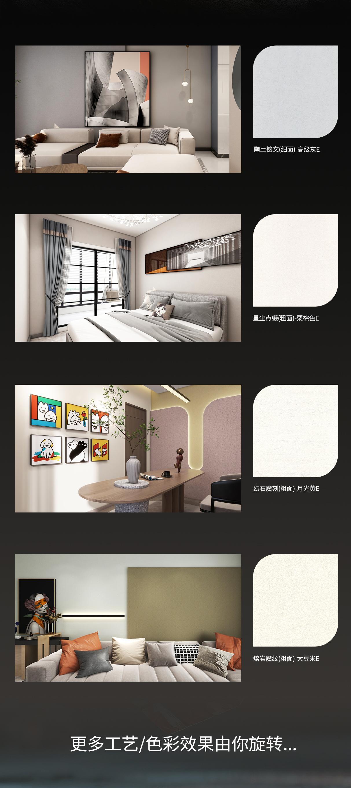√ 底料+面漆自由組合,面層仍可無限疊加不同藝術(shù)效果,這種持續(xù)進(jìn)化能力真正做到 “一套魔方涂裝系統(tǒng),解鎖空間百變”。