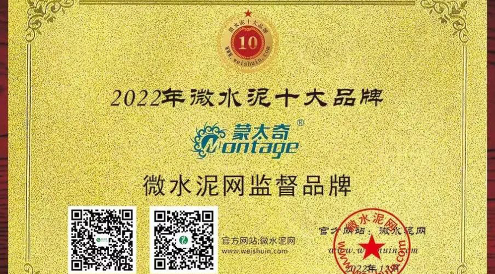 多年的專注與拼搏,全體蒙太奇人的共同努力,蒙太奇致力解決用戶家裝痛點(diǎn),為千萬(wàn)家用戶提供微水泥,本次榮獲微水泥十大品牌標(biāo)志著公司的發(fā)展已經(jīng)踏上更高的臺(tái)階。