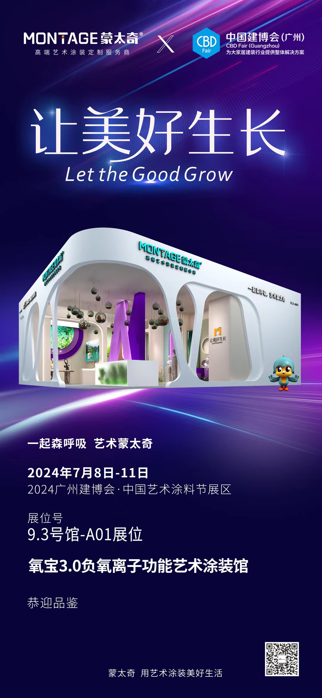本次展會,蒙太奇將推出“讓美好生長”年度品牌策略,繼續(xù)以獨創(chuàng)性氧寶3.0負氧離子高端功能藝術涂料為主打,傳承“一起森呼吸,藝術蒙太奇“的展館設計理念,全新推出氧寶3.0流行色彩和臻石高端石材系列產品,呈現(xiàn)蒙太奇“好產品+好色彩+好工藝+好服務”高端藝術涂裝定制服務品牌價值。