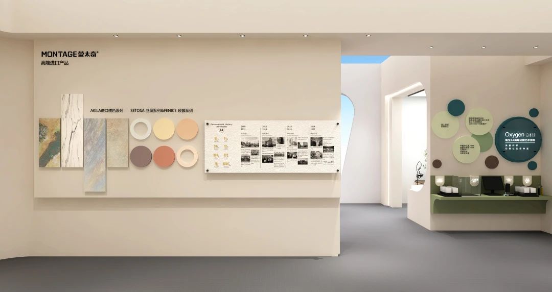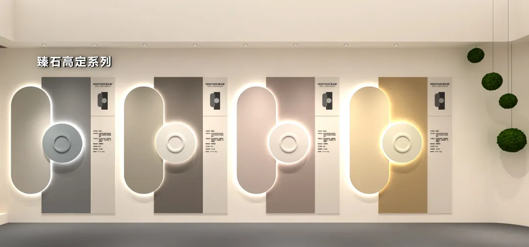 新品·臻石高端石材同樣作為蒙太奇本次展會的“重頭戲”,其自然天成特性,被諸多追求自然古樸、極高環(huán)保性與藝術(shù)性的工程建筑所使用。臻奢·無機微水泥系列、臻玉·石灰基系列、臻巖·萊姆石系列、臻石·天然礦石系列四大板塊將質(zhì)感藝術(shù)涂料的功能與美感展現(xiàn)得一覽無余。