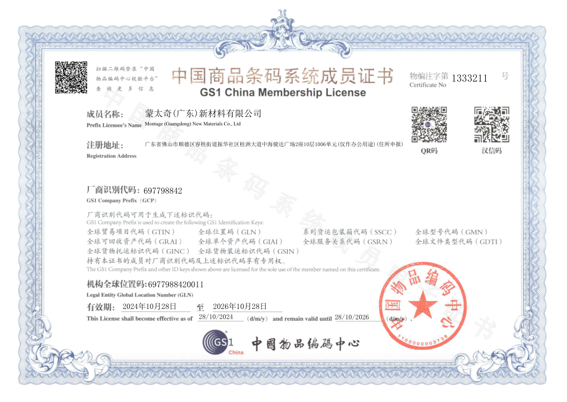 近日,蒙太奇藝術(shù)涂裝正式加入中國商品信息服務(wù)平臺,并取得由中國物品編碼中心頒發(fā)的《中國商品條碼系統(tǒng)成員證書》,正式成為該系統(tǒng)成員,擁有了自己的商品識別代碼,這標(biāo)志著品牌在維護消費者權(quán)益和提升品牌信譽方面邁出了堅實一步。