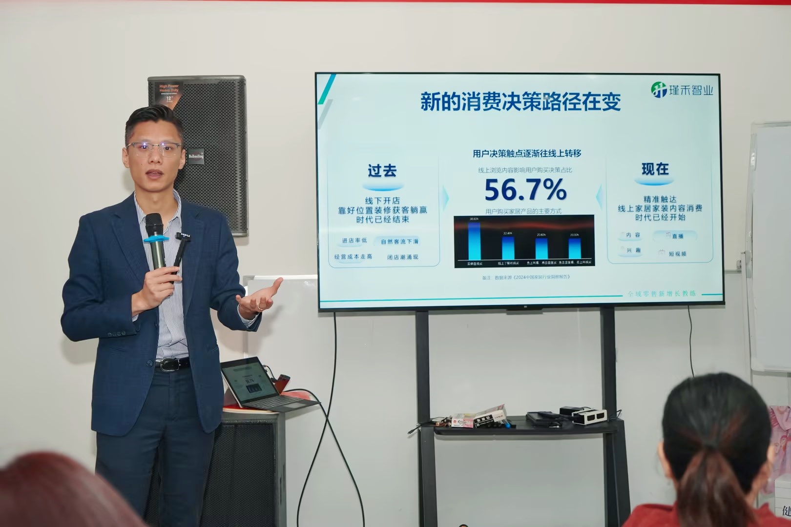 下午的新媒體實戰(zhàn)運營培訓(xùn)中,蒙太奇新媒體運營總監(jiān)唐群分別針對抖音、小紅書視頻號這三個平臺的基礎(chǔ)知識、運營規(guī)則以及廣告投放技巧等理論知識進行了分享。同時,還結(jié)合了蒙太奇在各平臺賬號從0到1的成長實戰(zhàn)經(jīng)驗,為經(jīng)銷商家人們進行了全面且深入的授課。助力各經(jīng)銷商打通各平臺的底層邏輯,從而更好地?fù)肀旅襟w平臺。