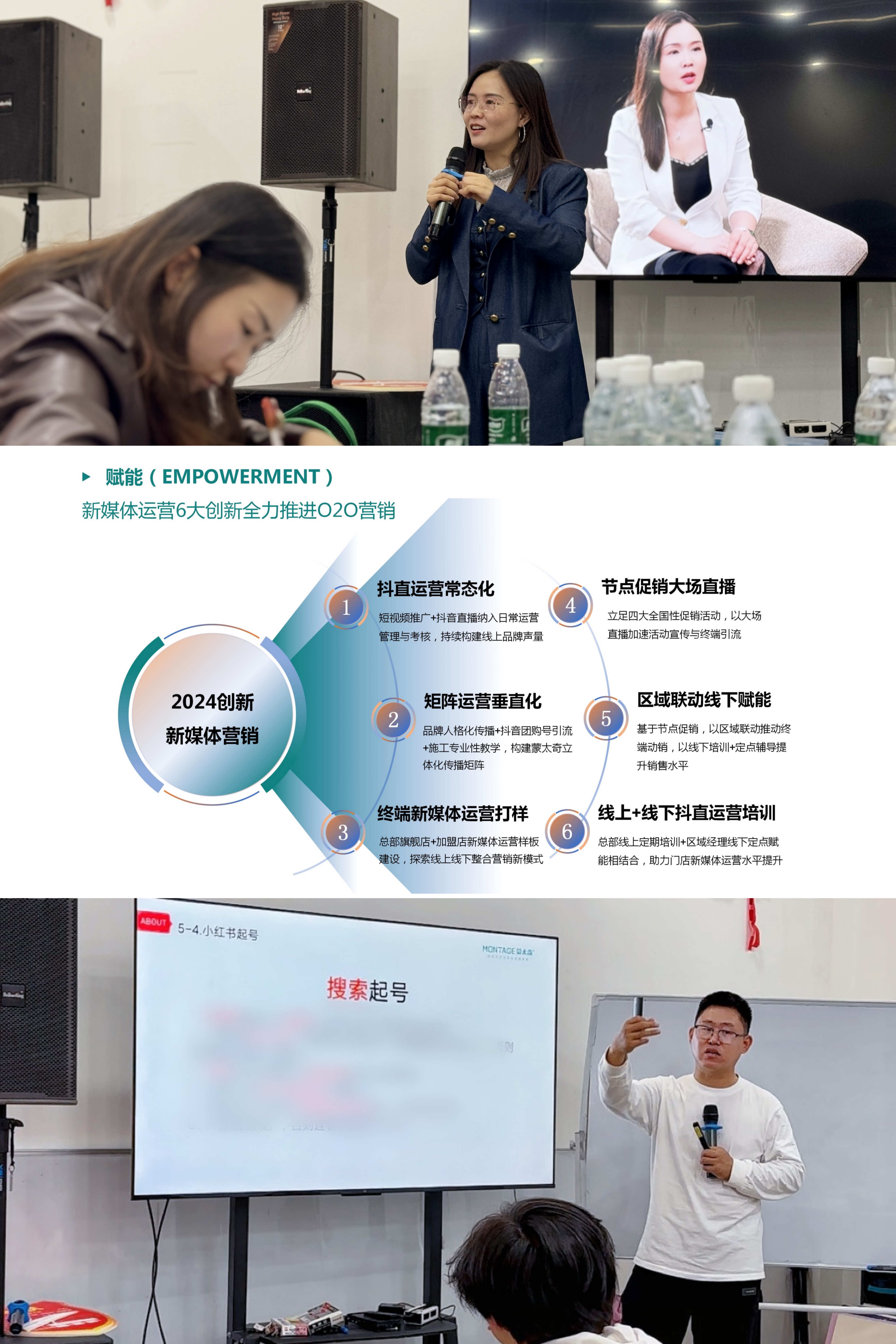 12月10日—11日,為期兩天的蒙太奇“粵閩瓊戰(zhàn)區(qū)跨年大促啟動會暨流量賦能特訓(xùn)營”順利結(jié)營。此次培訓(xùn)不僅屬于福建、廣東海南三地的聯(lián)動特訓(xùn),更通過直播形式覆蓋到了全國經(jīng)銷商。特訓(xùn)營旨在幫助終端門店提升新媒體實戰(zhàn)能力,通過專業(yè)課程培訓(xùn),熟練運用新媒體營銷工具,拓寬門店獲客渠道,為跨年大促做好沖刺準(zhǔn)備。