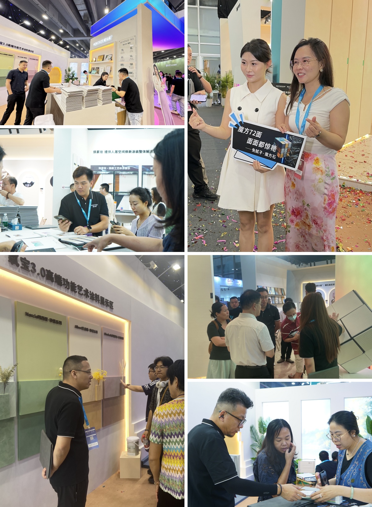 本屆廣州建博會上,在藝術(shù)涂料展區(qū)企業(yè)稀疏、觀眾寥寥的大環(huán)境下,蒙太奇將“魔方72面,面面都驚艷”的魔方石產(chǎn)品理念融入展位空間,從展館設(shè)計的獨特創(chuàng)意到重磅新品的驚艷亮相,都獨具一格。蒙太奇收獲無數(shù)閃耀時刻,吸引眾多客商和媒體的目光,在為期四天的展會中,蒙太奇展位人潮涌動,一次次刷新了展館的人流量高峰。