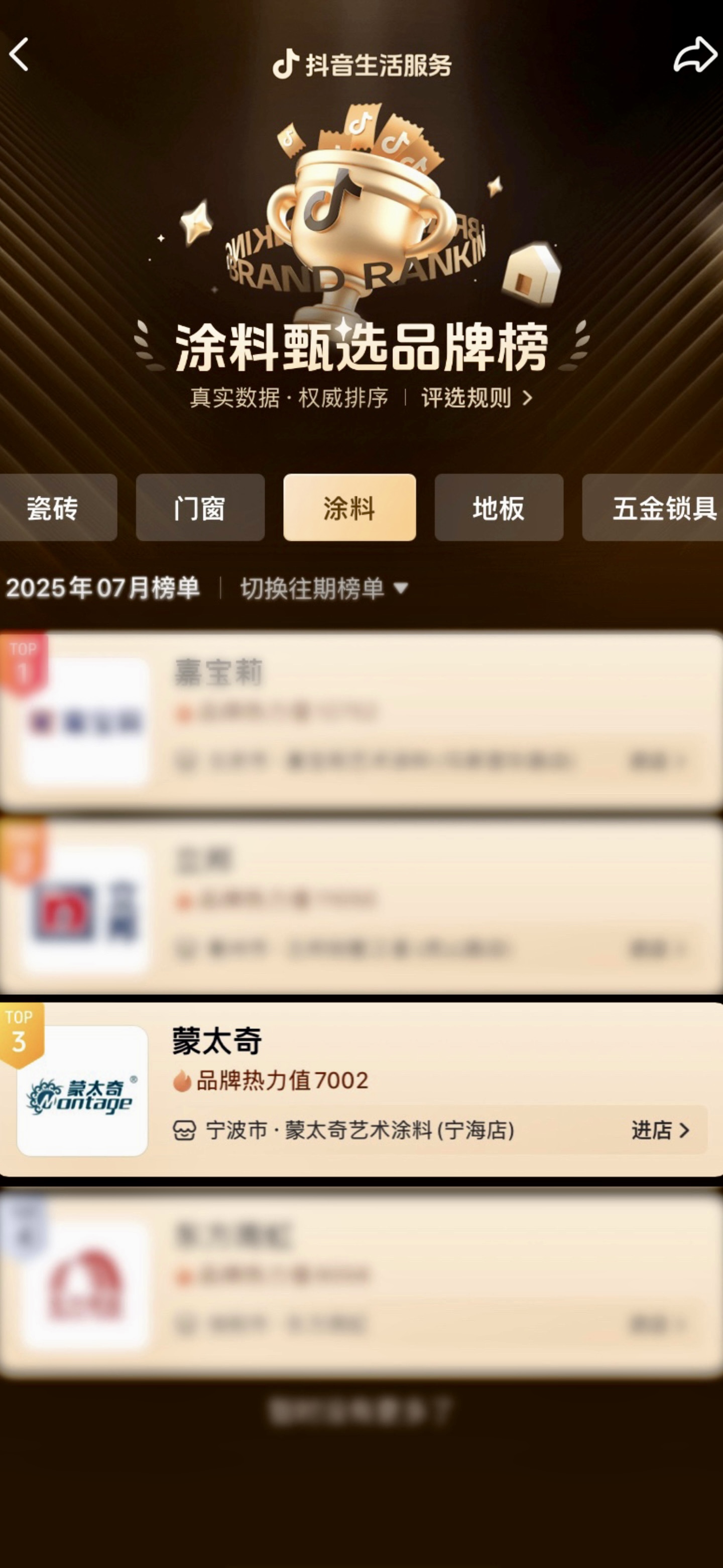 近日,抖音生活服務(wù)重磅發(fā)布行業(yè)權(quán)威榜單,蒙太奇藝術(shù)涂料憑借卓越的產(chǎn)品品質(zhì)與深厚的消費者口碑,成功榮膺【抖音生活服務(wù)·涂料甄選品牌榜TOP3】。這一榮譽不僅是對蒙太奇品牌市場影響力的權(quán)威認可,更彰顯了其作為藝術(shù)涂料領(lǐng)域創(chuàng)新引領(lǐng)者的強勁實力,為行業(yè)樹立了數(shù)字化營銷新標桿。