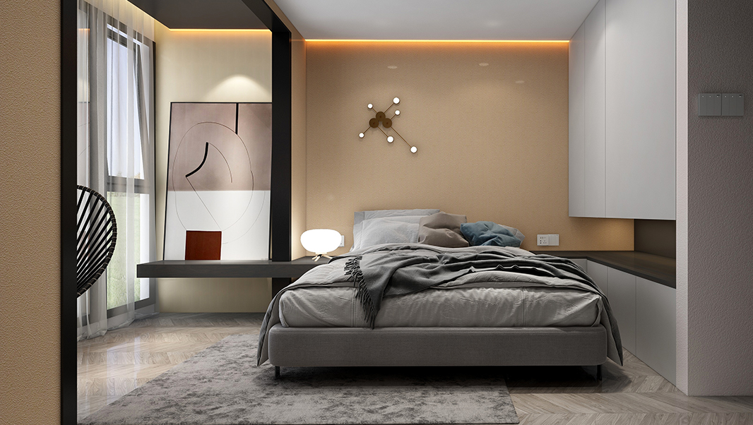 110㎡藝術(shù)涂料三居室簡(jiǎn)約風(fēng)案例