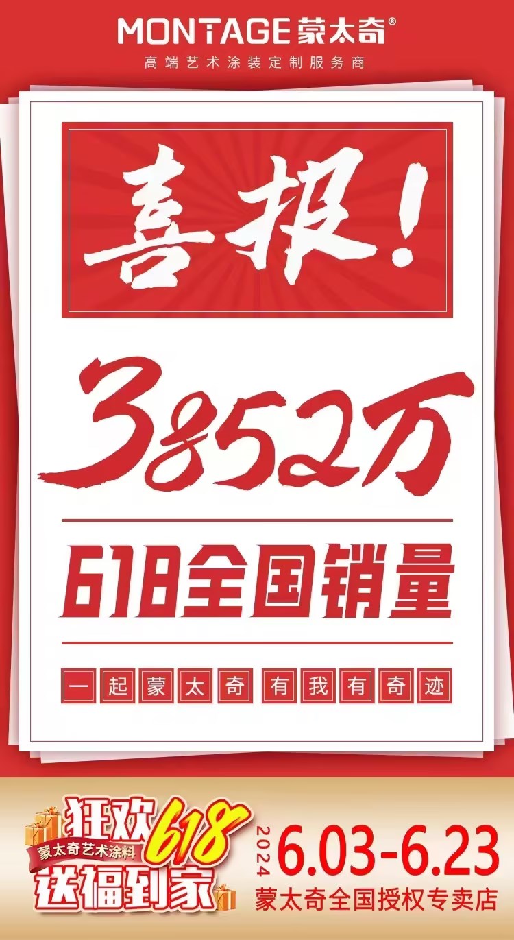 6月3日-23日,歷經(jīng)21天的激烈?jiàn)^戰(zhàn),蒙太奇“狂歡618·送福到家”全國(guó)促銷活動(dòng)以耀眼成績(jī)完美收官!此次活動(dòng),蒙太奇各大區(qū)門(mén)店聯(lián)動(dòng)讓利,開(kāi)啟火爆簽單模式,最終以3852萬(wàn)的總成交額領(lǐng)跑市場(chǎng),為年中沖刺畫(huà)上完美的句號(hào)。