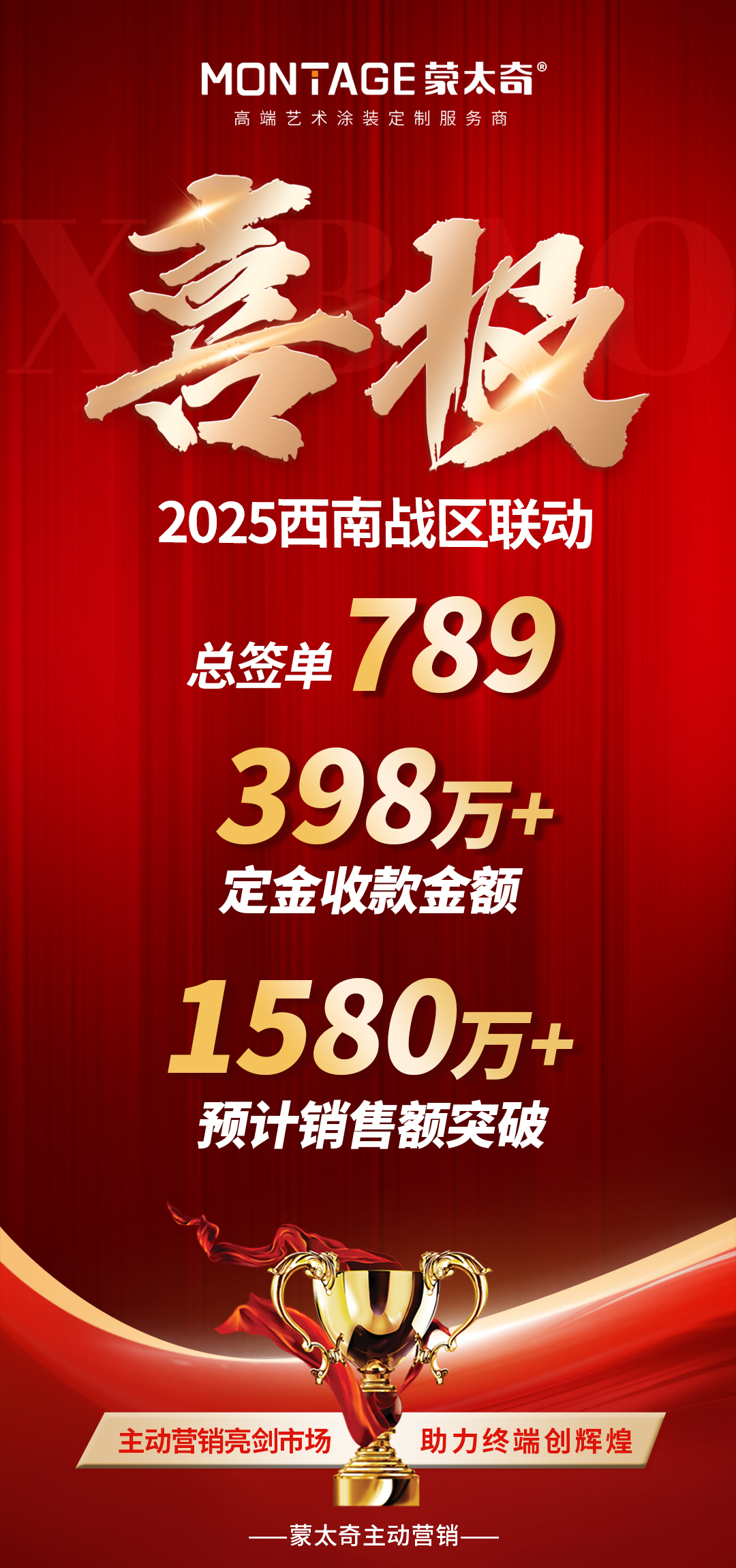 歷時23天的"51惠裝季"西南區(qū)域聯(lián)動活動于5月11日圓滿收官。蒙太奇全國終端門店通過精準營銷策略與高效執(zhí)行體系,在此次跨區(qū)域聯(lián)動中交出亮眼成績單,共創(chuàng)下成交789單、定金收款總額超398萬元的佳績,不僅實現(xiàn)銷售業(yè)績與用戶口碑的雙向突破,更以破圈之勢推動品牌勢能持續(xù)攀升,為終端市場布局注入強勁動能。