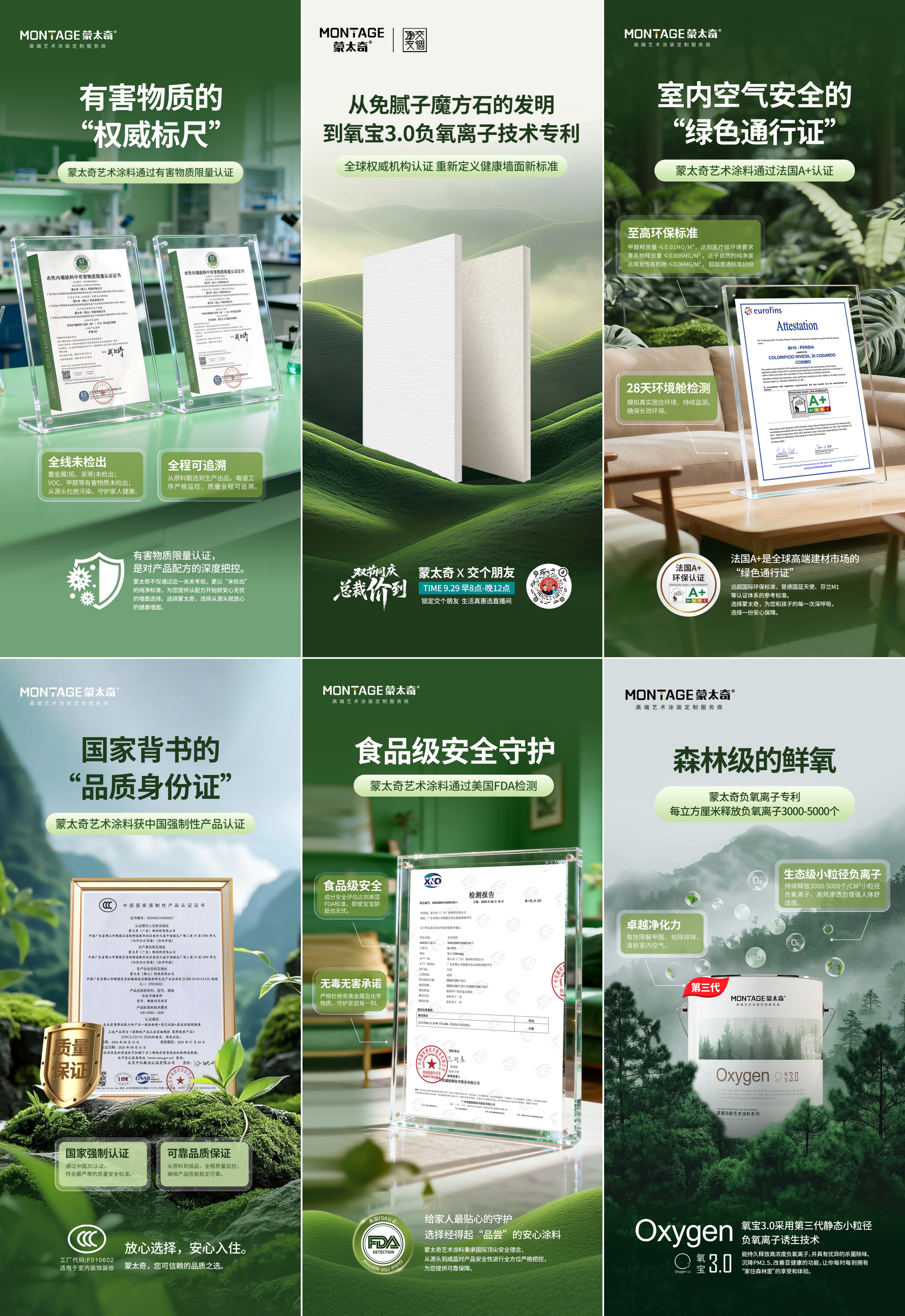 品質(zhì)生活,源于安心選擇。蒙太奇藝術(shù)涂料始終將用戶健康放在首位,旗下全線產(chǎn)品均通過嚴(yán)格有害物質(zhì)限量認(rèn)證,擁有法國(guó)A+室內(nèi)空氣檢測(cè)認(rèn)證、美國(guó)FDA食品接觸級(jí)認(rèn)證等多項(xiàng)國(guó)際權(quán)威資質(zhì),真正做到環(huán)保無害、即刷即住,為家庭健康保駕護(hù)航。無論是兒童房、臥室還是客廳,蒙太奇藝術(shù)涂料均能提供安全無憂的呼吸環(huán)境,讓家成為真正的健康港灣。